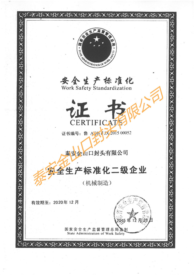安全生產(chǎn)標(biāo)準(zhǔn)化證書